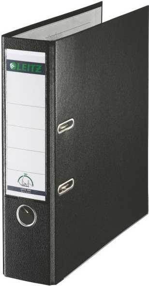 LEITZ Plastikordner, 180 Grad, DIN A4, 80 mm, schwarz farbiger Einband aus Pappe, mit PP-Folie kaschiert (1010-50-95)