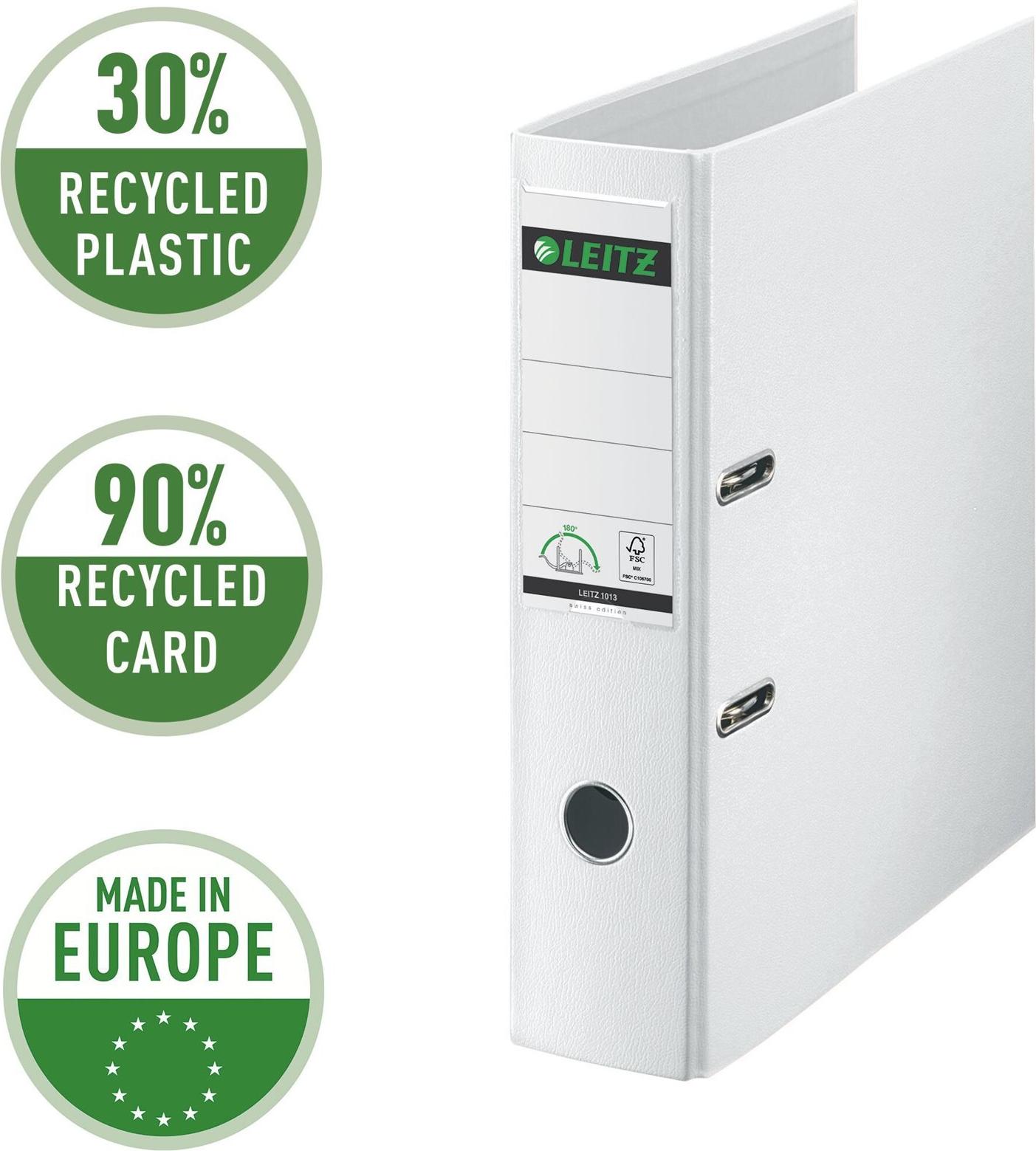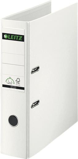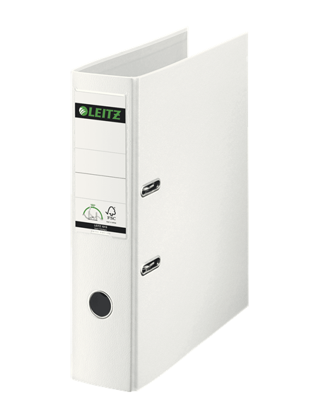 LEITZ Plastikordner, 180 Grad, DIN A4, 80 mm, weiß ohne Kantenschutz, farbiger Einband aus Pappe, mit PP-Folie - 1 Stück (1013-50-01)