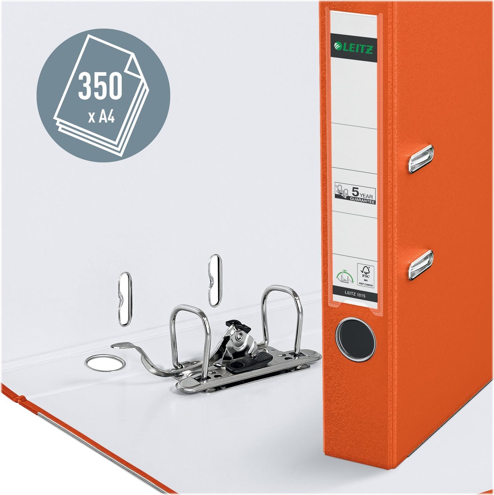 LEITZ Plastikordner, 180 Grad, DIN A4, 52 mm, orange farbiger Einband aus Pappe, mit PP-Folie kaschiert (1015-50-45)