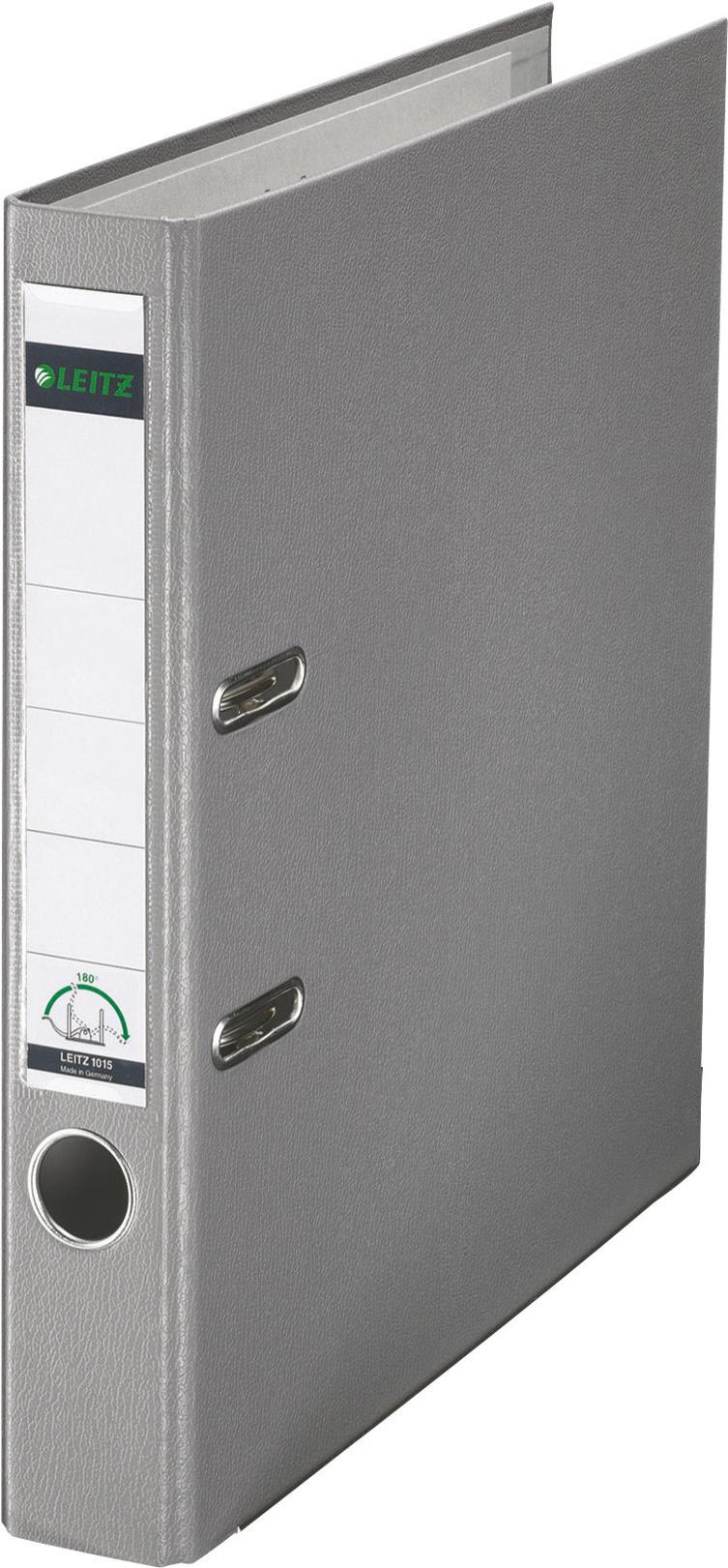 LEITZ Plastikordner, 180 Grad, DIN A4, 52 mm, grau farbiger Einband aus Pappe, mit PP-Folie kaschiert (1015-50-85)