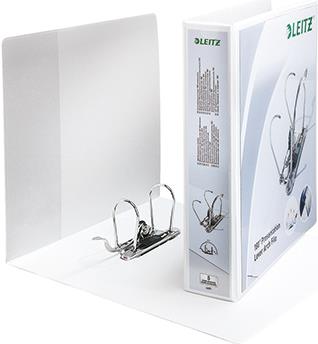 LEITZ Präsentations-Ordner, 180 Grad, A4 Überbreite, 80 mm weiß, aus genarbter, umweltfreundlicher PP-Folie (4225-00-01)