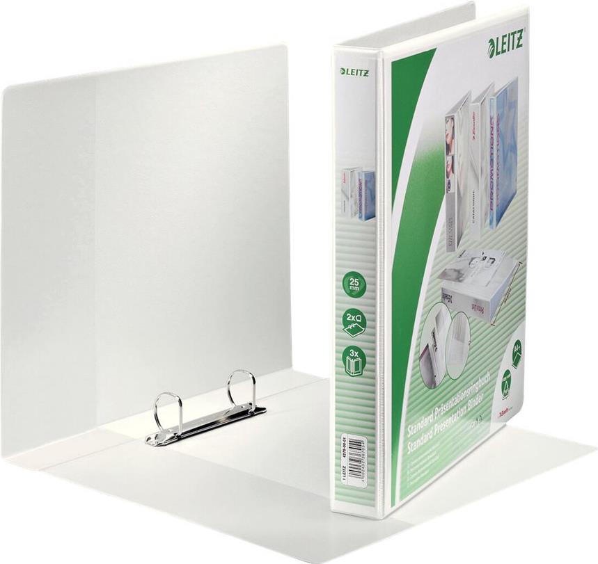 • LEITZ Präsentations-Ringbuch, A4 Überbreite, weiß, 2 D-Ring Mechanik, Rückenbreite: 44 mm, Ringdurchmesser: 25 mm (4279-00-01)