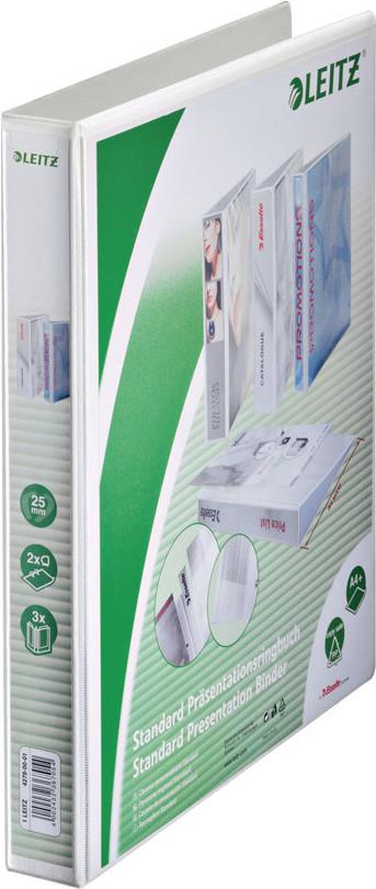 LEITZ Präsentations-Ringbuch, A4 Überbreite, weiß, 2 D-Ring Mechanik, Rückenbreite: 44 mm, Ringdurchmesser: 25 mm (4279-00-01)