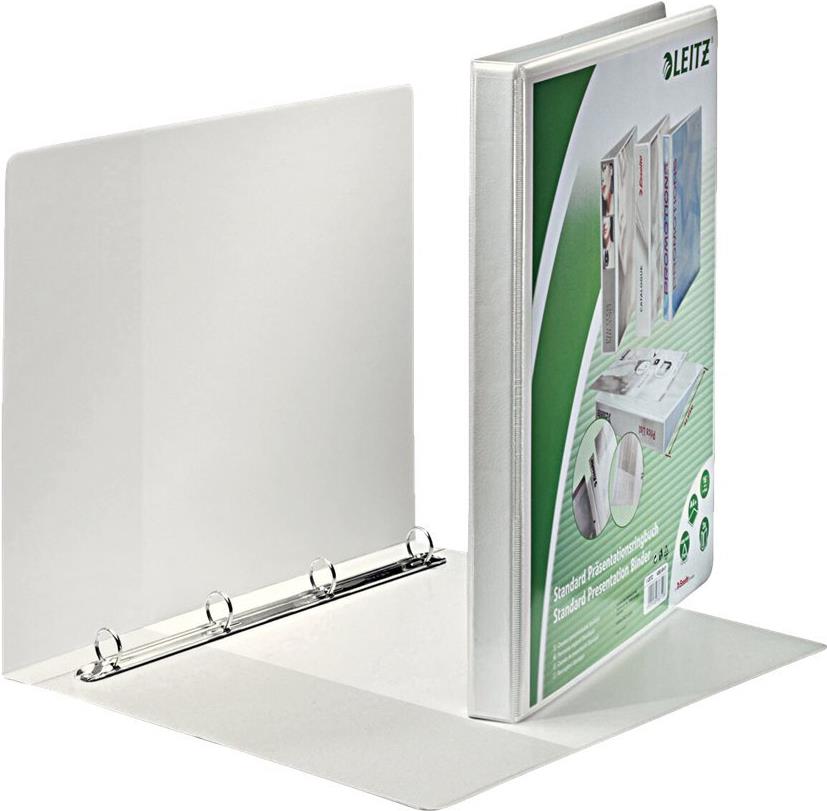LEITZ Präsentations-Ringbuch, A4 Überbreite, weiß, 4 Rund- Ring-Mechanik, Rückenbreite: 30 mm, Ringdurchmesser: 16 mm (4282-00-01)