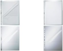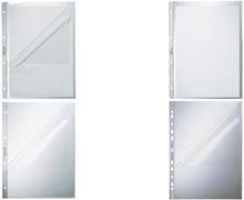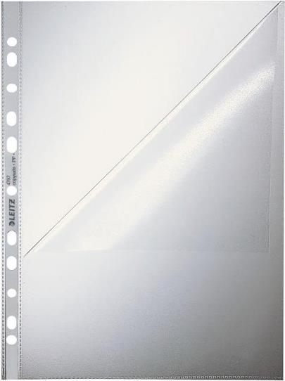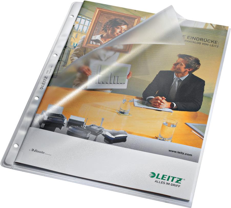 Prospekthüllen mit einer klaren, matten Oberfläche, ideal für den täglichen Gebrauch zu Hause, im Büro oder in der Schule. Der verstärkte Streifen mit 11 Löchern ermöglicht die bequeme Aufbewahrung von Dokumenten in Ordnern und Ringbüchern und schützt sie vor Feuchtigkeit, Staub und Schmutz. Dank der Öffnung oben und an der linken Seite ist der Zugriff auf die Unterlagen sehr einfach und erspart das zusätzliche Öffnen der Ordner-Heftmechanik. Das dokumentenechte und säurefreie Material gewährleistet den Schutz der Dokumente. Hergestellt aus PP-Kunststoff (Polypropylen) mit 30% Pre-Consumer-Anteil, 100% recycelbar.