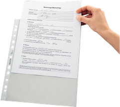 Hochwertige Prospekthülle für den täglichen Gebrauch. Die Universal-Lochung ermöglicht eine bequeme Ablage in Ordnern und Ringbüchern.