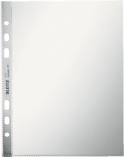 LEITZ Prospekthülle Standard, A5, PP, glasklar, 0,08 mm oben offen, dokumentenecht, Lochung: Eurolochung (4775-00-02)