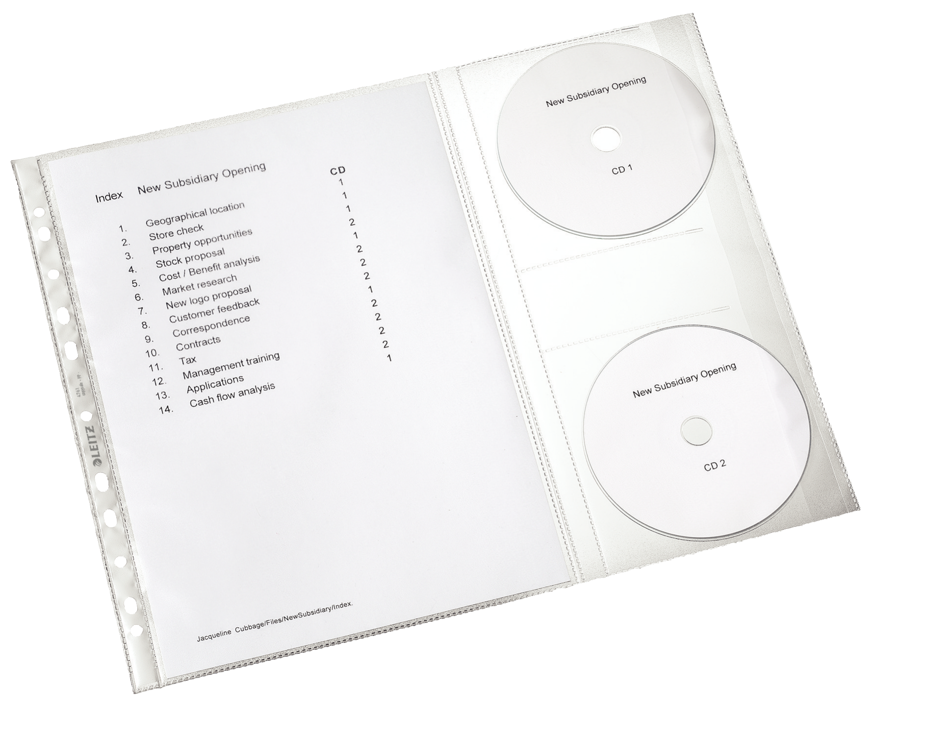 Leitz Prospekthülle mit CD-Klappe - 210 x 297 mm (A4) - Transparent - Polypropylene (PP) - Porträt - Oben (4761-30-03)