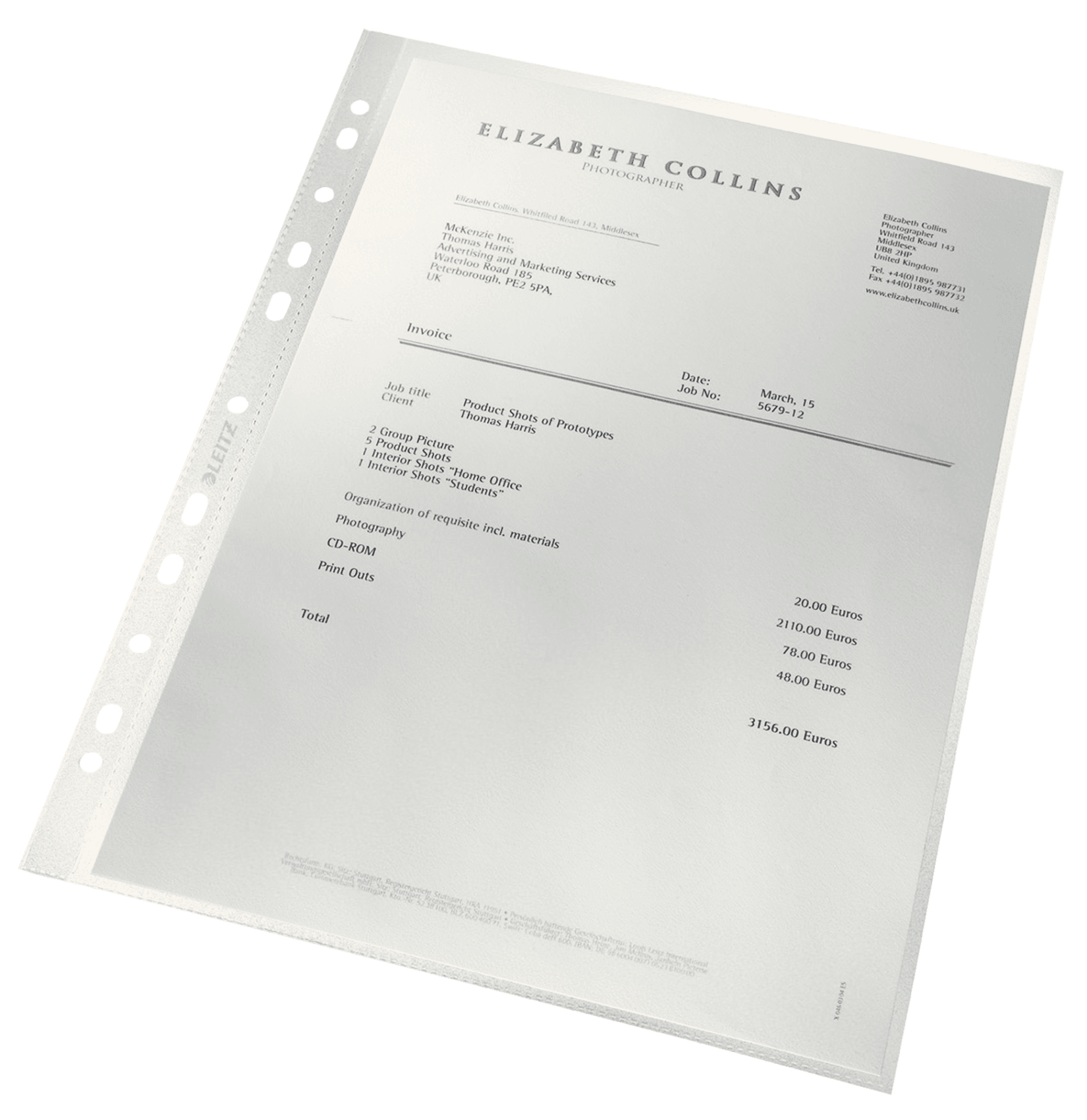 LEITZ Prospekthülle re:cycle, A4, PP-Restmaterial, 0,09 mm genarbt, oben offen, dokumentenecht, Lochung: Eurolochung (4791-10-03)