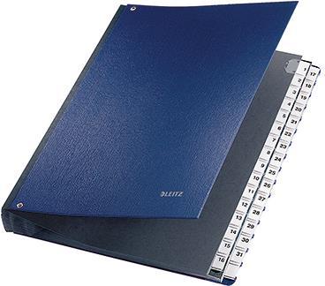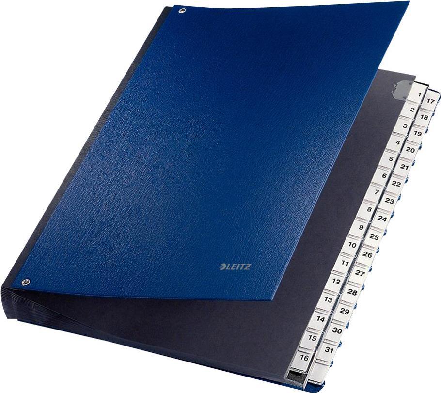 LEITZ Pultordner, A4, 1-31, 32 Fächer, Kunststoff, blau Fächerblock aus reißfestem Karton, Einband aus Graupappe (5931-00-35)
