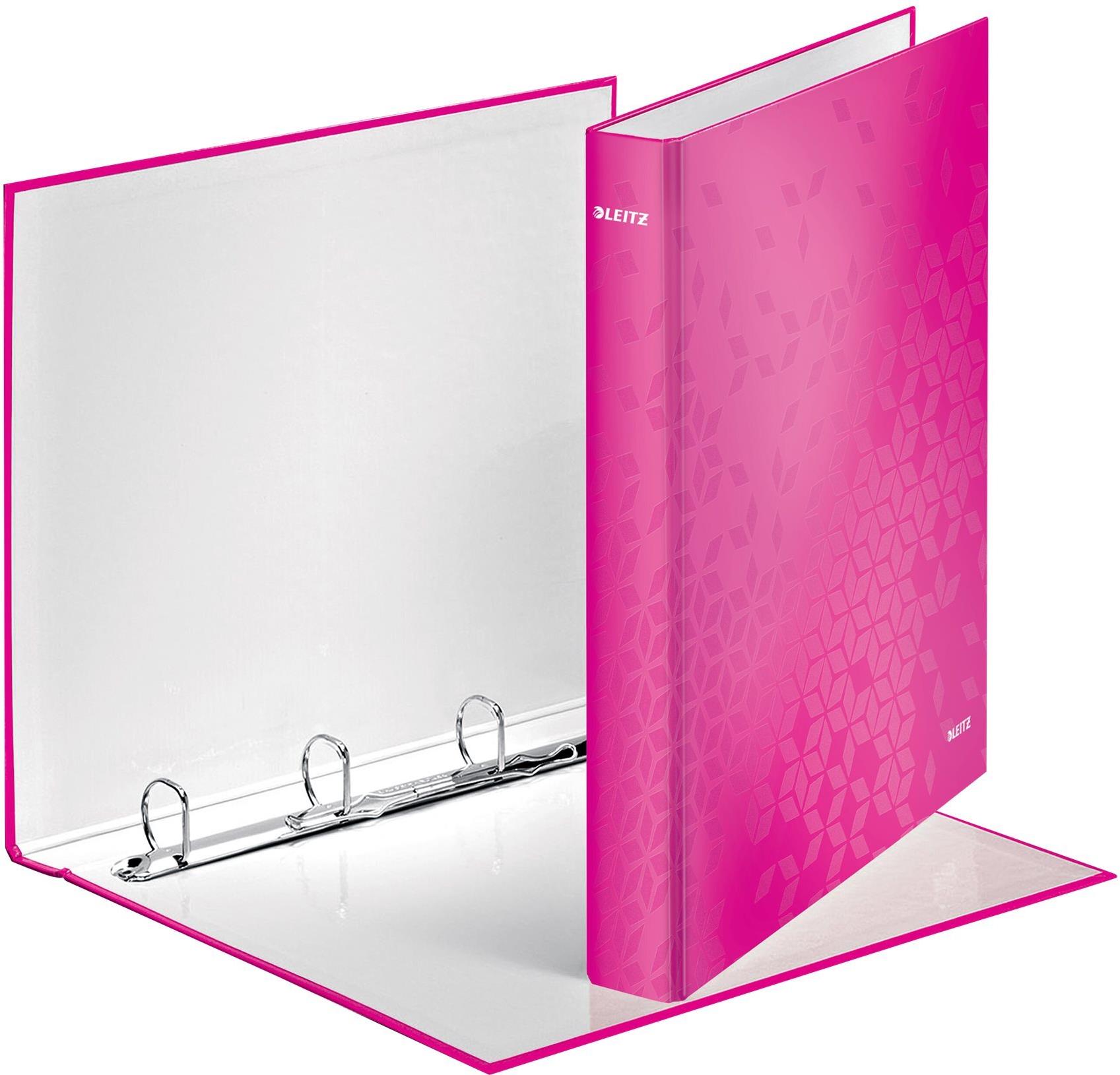 LEITZ Ringbuch WOW, DIN A4, Hartpappe, pink 4 D-Ring-Mechanik, Rückenbreit: 40 mm, Ringdurchmesser: - 1 Stück (42420023)