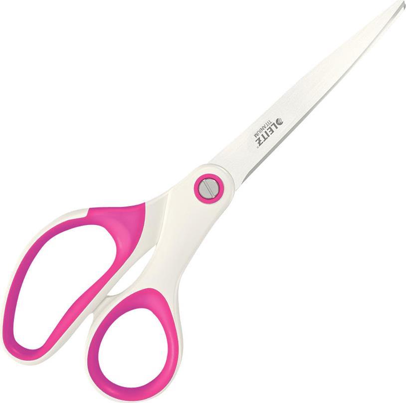 Hochwertige, titanbeschichtete Schere aus rostfreiem deutschem Stahl. Die besonders haltbaren titanbeschichteten Klingen bleiben deutlich länger scharf als Standardklingen. Mit komfortablem, ergonomischem Softgriff in auffälligen und stylischen WOW-Farben. Plastikfreie Verpackung, Hängekarte aus Karton.