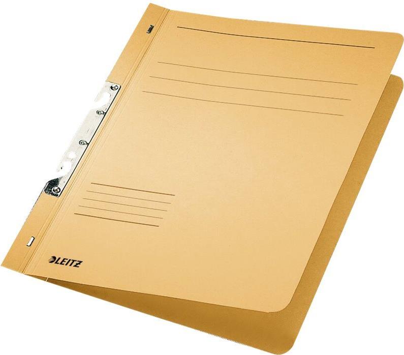 LEITZ Schlitzhefter, DIN A4, Manilakarton, chamois 250 g/qm, Fassungsvermögen: 170 Blatt, Heftmechanik 80 mm, für kaufmännische Heftung, mit Beschriftungslinien, 80 mm Schlitze mit flexibler Drahtfeder am unteren Schlitz für schnelles Einhaken, Maße: (B)241 x (H)305 mm, gepackt zu 50 Stück (3746-00-11)