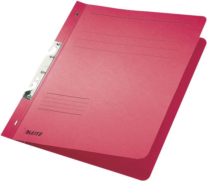 LEITZ Schlitzhefter, DIN A4, Manilakarton, rot 250 g/qm, Fassungsvermögen: 170 Blatt, Heftmechanik 80 mm, für kaufmännische Heftung, mit Beschriftungslinien, 80 mm Schlitze mit flexibler Drahtfeder am unteren Schlitz für schnelles Einhaken, Maße: (B)241 x (H)305 mm, gepackt zu 50 Stück (3746-00-25)