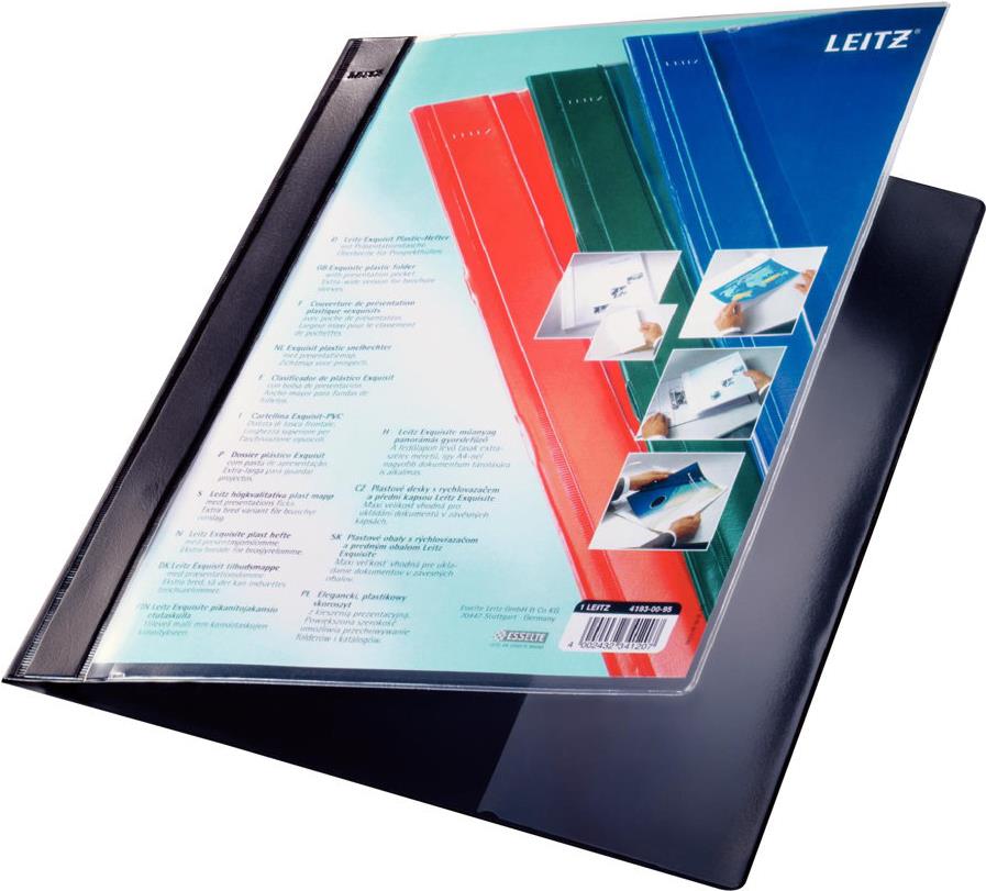 LEITZ Schnellhefter Exquisit mit Präsentationstasche,schwarz DIN A4 Überbreite, PVC-Hartfolie, Vorderdeckel als trans- (4193-00-95)
