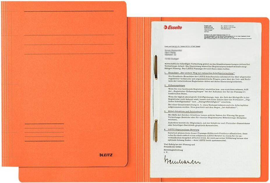 • LEITZ Schnellhefter Fresh, DIN A4, Karton, orange aus Pendarec-Karton, 250 g-qm, Fasungsvermögen: 250 Blatt, - 25 Stück (3003-00-45)