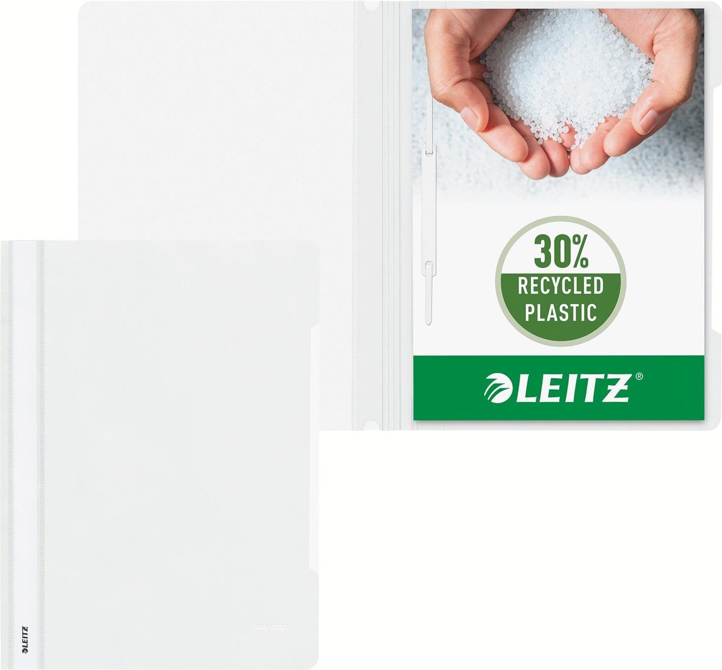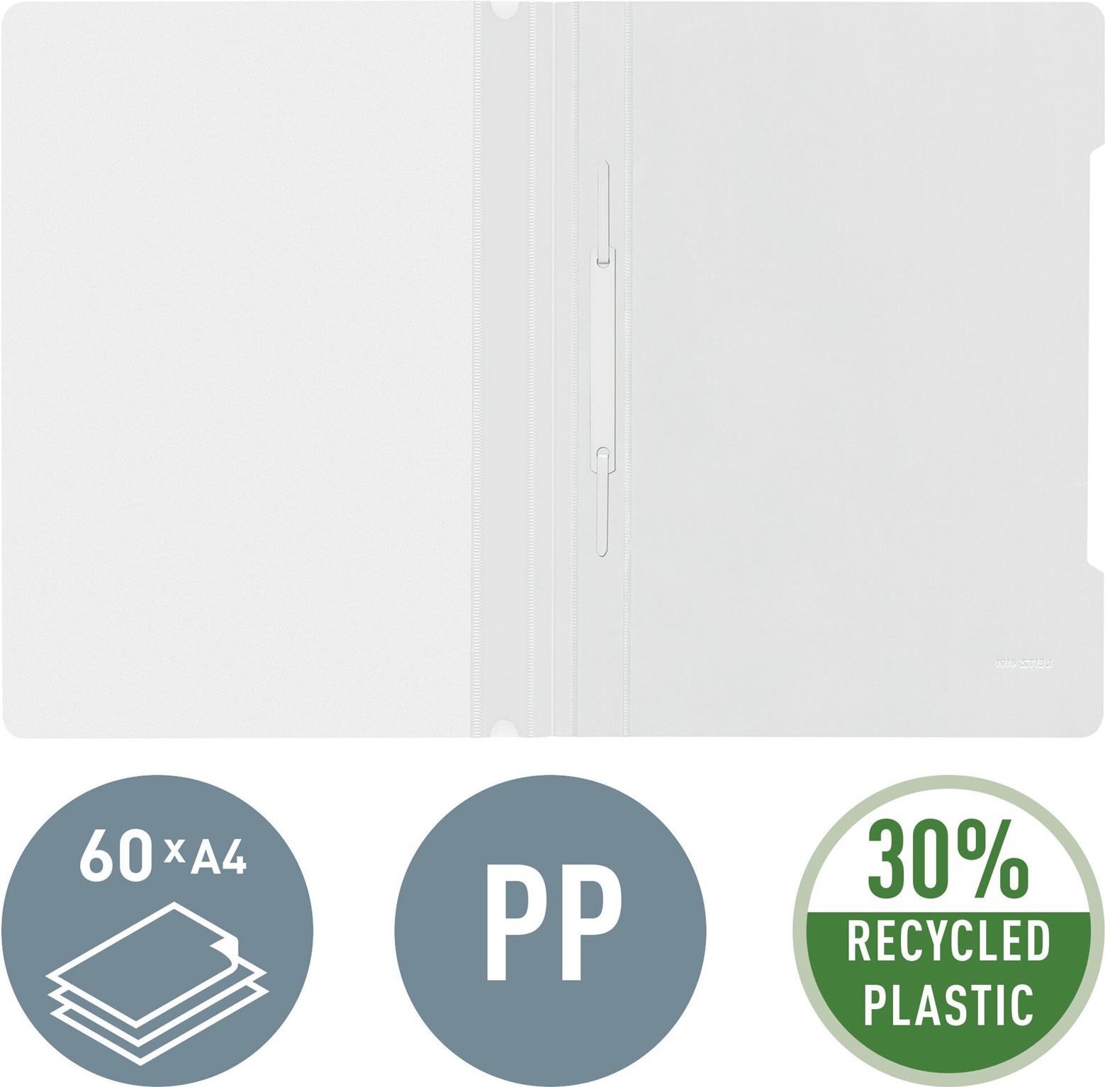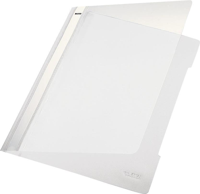 LEITZ Schnellhefter Standard, DIN A4, PVC, weiß aus PVC-Hartfolie, Vorderdeckel transparent, Heftmechanik - 25 Stück (4191-00-01)