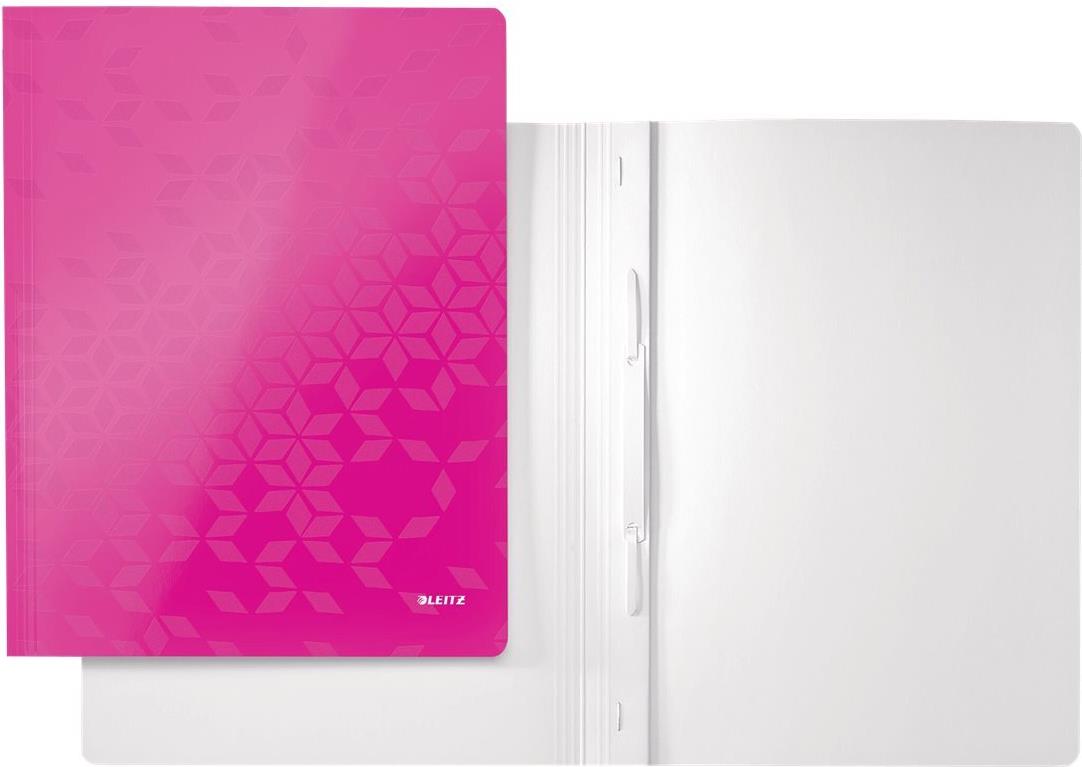 LEITZ Schnellhefter WOW, DIN A4, Karton, pink metallic aus PP-laminiertem Karton, 300 g-qm, Fassungsvermögen: - 10 Stück (3001-00-23)