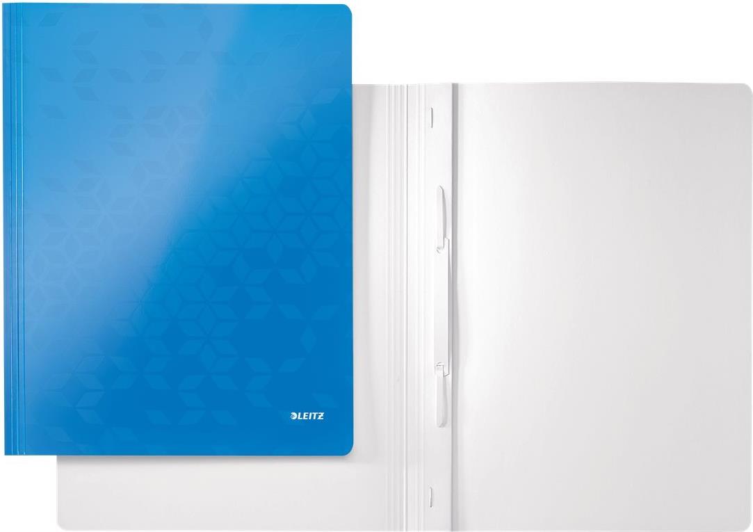 LEITZ Schnellhefter WOW, DIN A4, Karton, blau metallic aus PP-laminiertem Karton, 300 g-qm, Fassungsvermögen: - 10 Stück (3001-00-36)