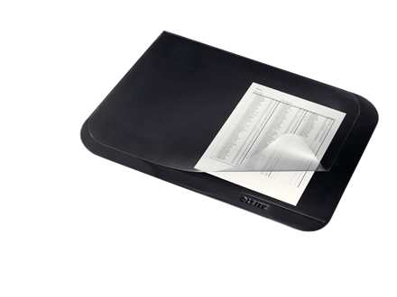 Schreibunterlage in Premium-Qualität mit Soft-Touch Oberfläche und rutschfester Rückseite. Inklusive transparenter Abdeckung.