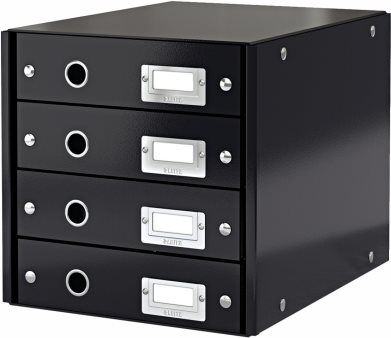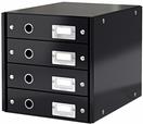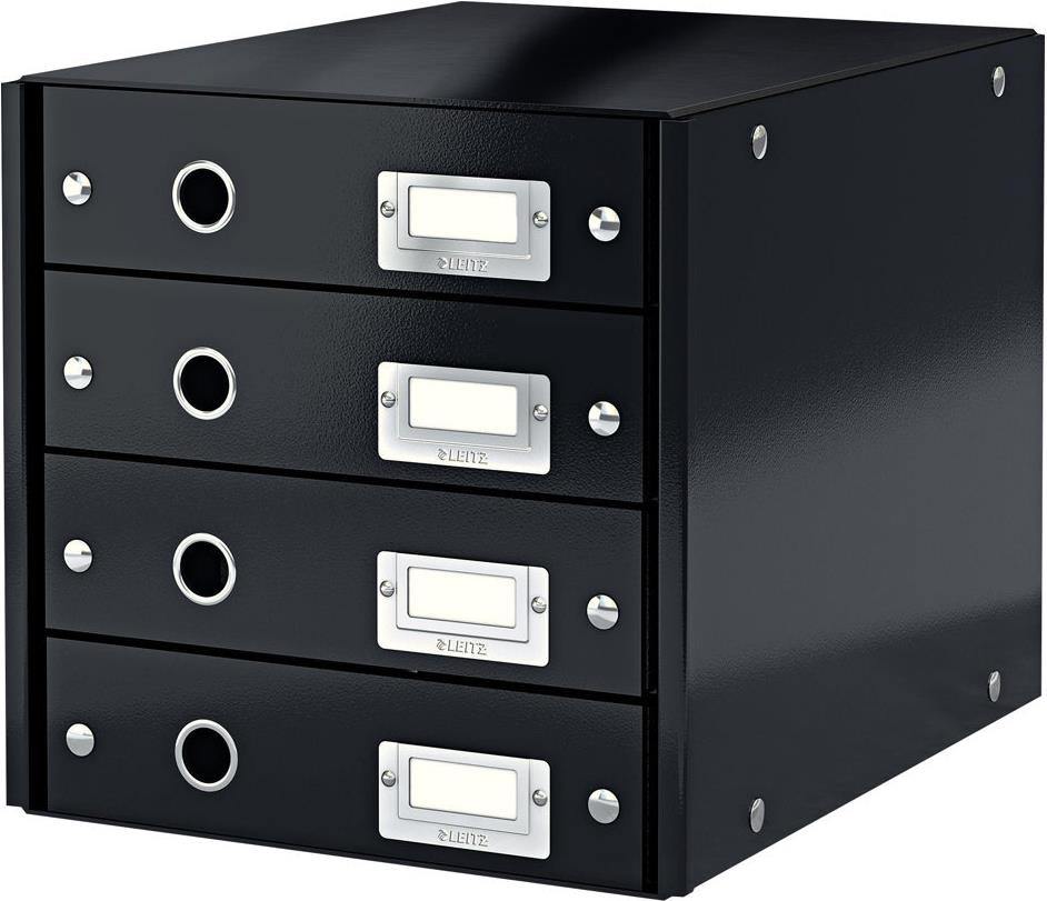 LEITZ Schubladenbox Click & Store, 4 Schübe, schwarz für Format DIN A4, Hartpappe mit PP-Folie, Aufbau mittels (6049-00-95)