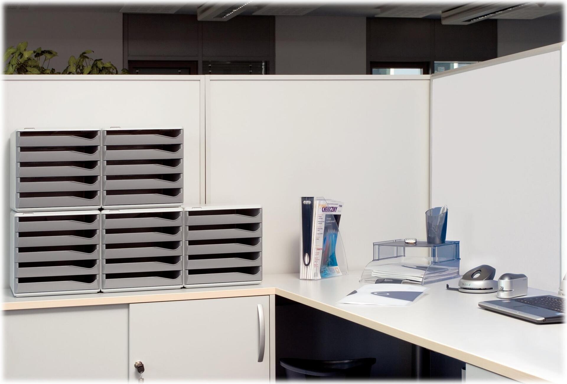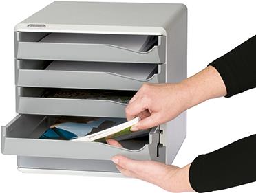 Formschönes, stabiles Schubladenset zur Aufbewahrung von Dokumenten und Büromaterialien.