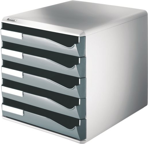 Esselte-Leitz LEITZ Schubladenbox Post-Set, 5 Schübe, lichtgrau/dunkelgrau für Format DIN A4, Schubladen mit Auszugsstopp, auto - 1 Stück (5280-00-89)