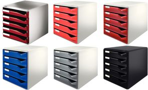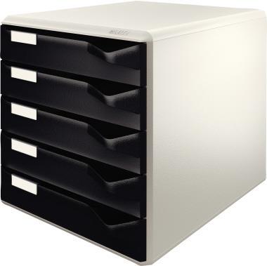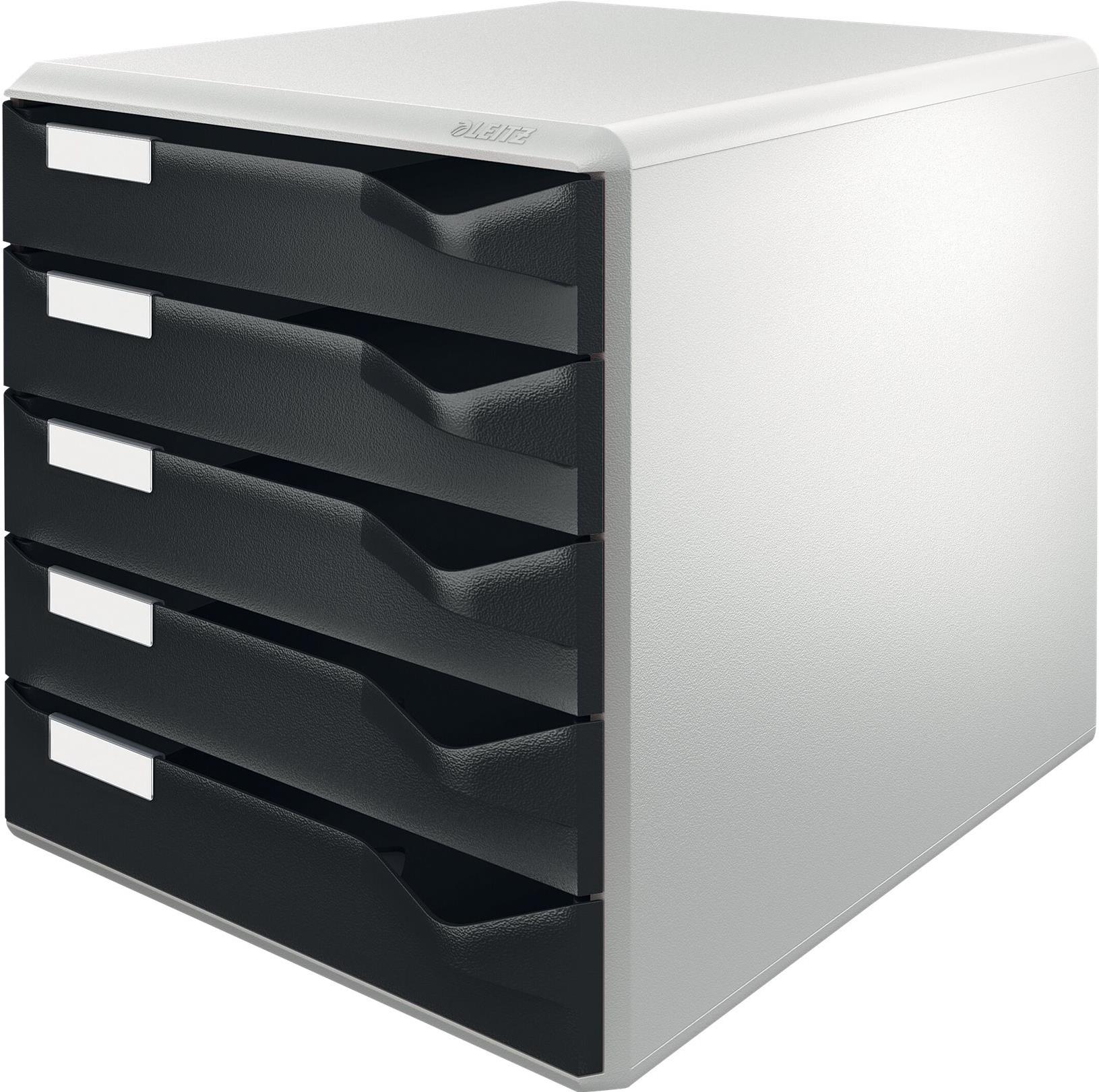 Esselte-Leitz LEITZ Schubladenbox Post-Set, 5 Schübe, lichtgrau/schwarz für Format DIN A4, Schubladen mit Auszugsstopp, auto - 1 Stück (5280-00-95)