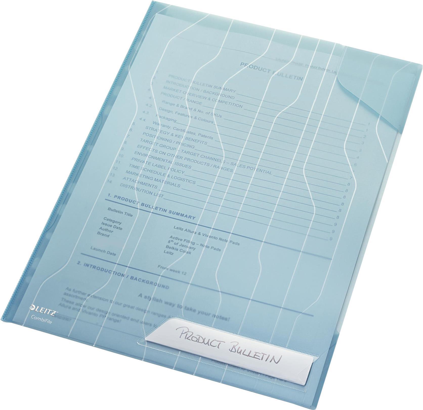 LEITZ Sicht--Prospekthülle CombiFile, A4, PP, blau, 0,20 mm genarbt, Kombination aus Prospekthülle und Sichthülle (4726-00-35)