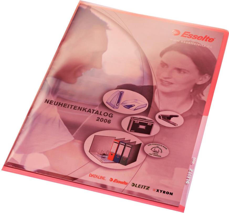LEITZ Sichthülle Premium, A4, PVC, rot, 0,15 mm oben und seitlich offen, dokumentenecht, Hartfolie (4100-00-25)