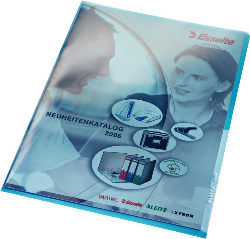 LEITZ Sichthülle Premium, A4, PVC, blau, 0,15 mm oben und seitlich offen, dokumentenecht, Hartfolie (4100-00-35)