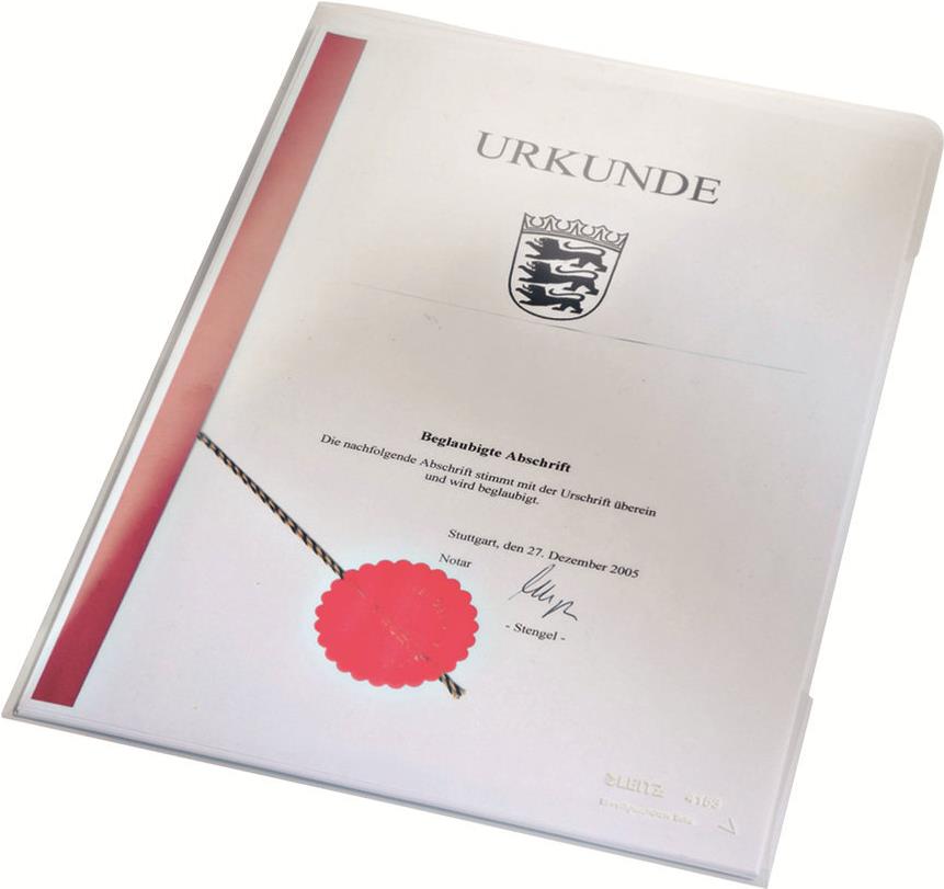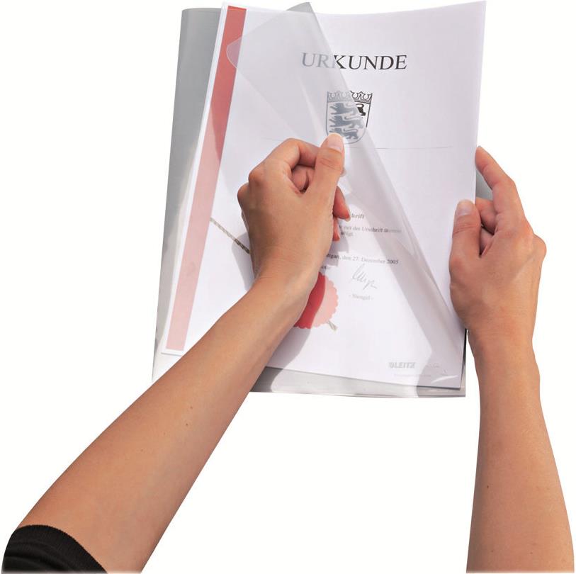 • LEITZ Sichthülle Super Premium, A4, PVC, glasklar, 0,15 mm oben und seitlich offen, dokumentenecht, Hartfolie (4153-00-03)