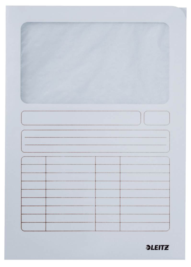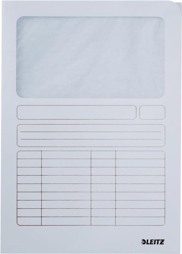 LEITZ Sichtmappe, DIN A4, Karton, mit Sichfenster, weiß 160 g-qm, Oberteil mit beschriftbarem Druckraster, Sicht- - 100 Stück (3950-00-01)