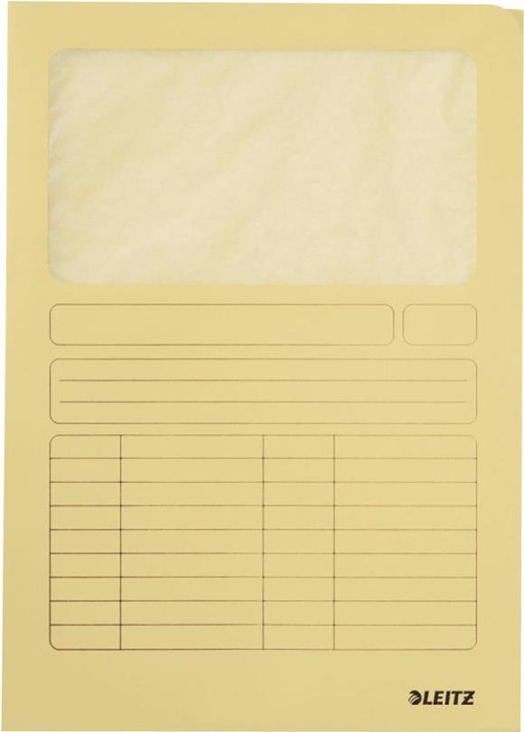 • LEITZ Sichtmappe, DIN A4, Karton, mit Sichtfenster, gelb 160 g/qm, Oberteil mit beschriftbarem Druckraster, Sicht- - 100 Stück (3950-00-15)