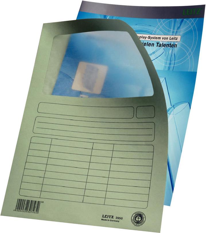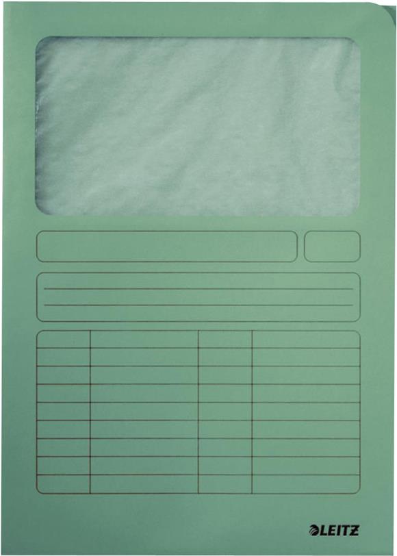LEITZ Sichtmappe, DIN A4, Karton, mit Sichtfenster, hellgrün fenster aus Pergamin, rechte und obere Seite offen, als Umlauf- oder Korrespondenzmappe geeigent, Maße: (B)220 x (H)307 mm, gepackt zu 100 Stück (3950-00-50)