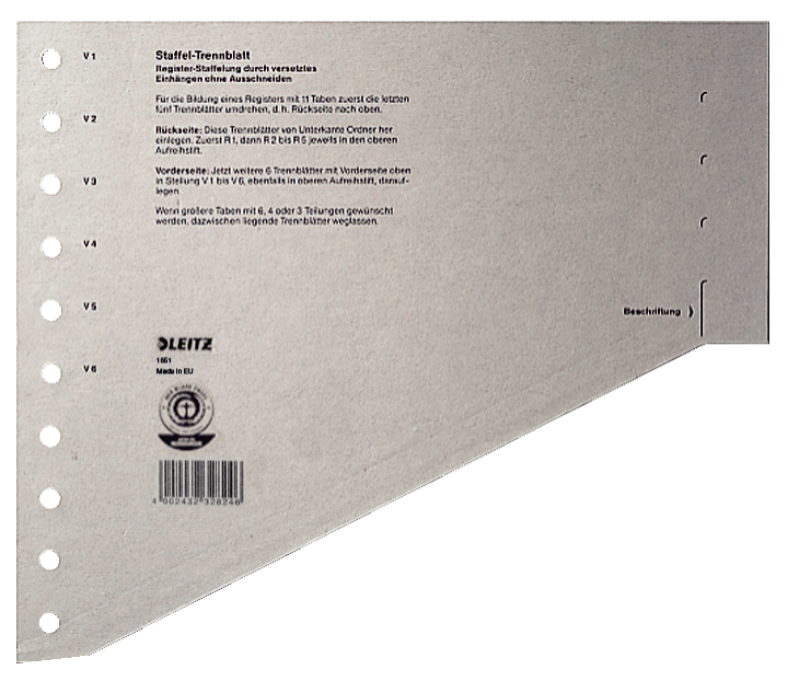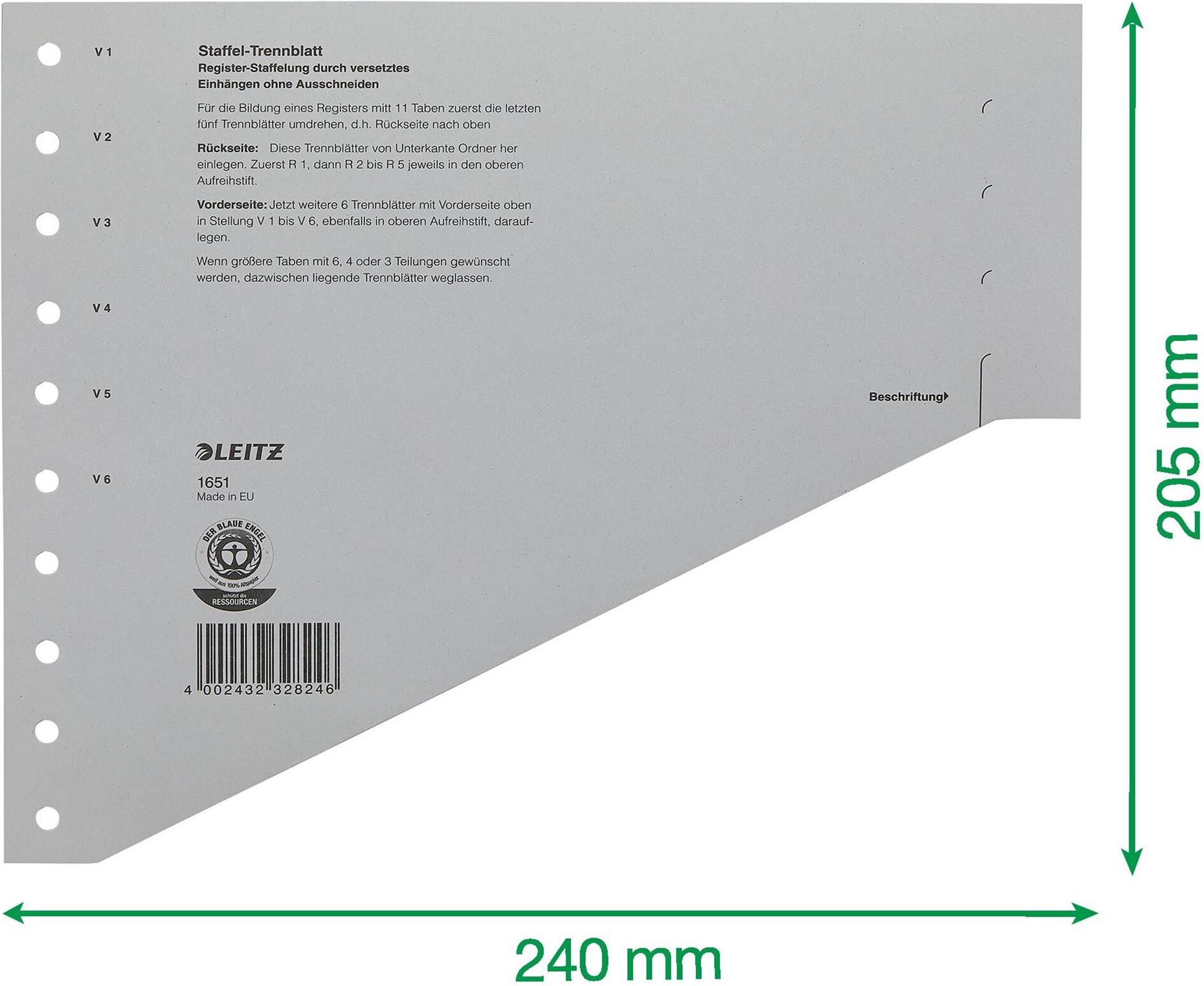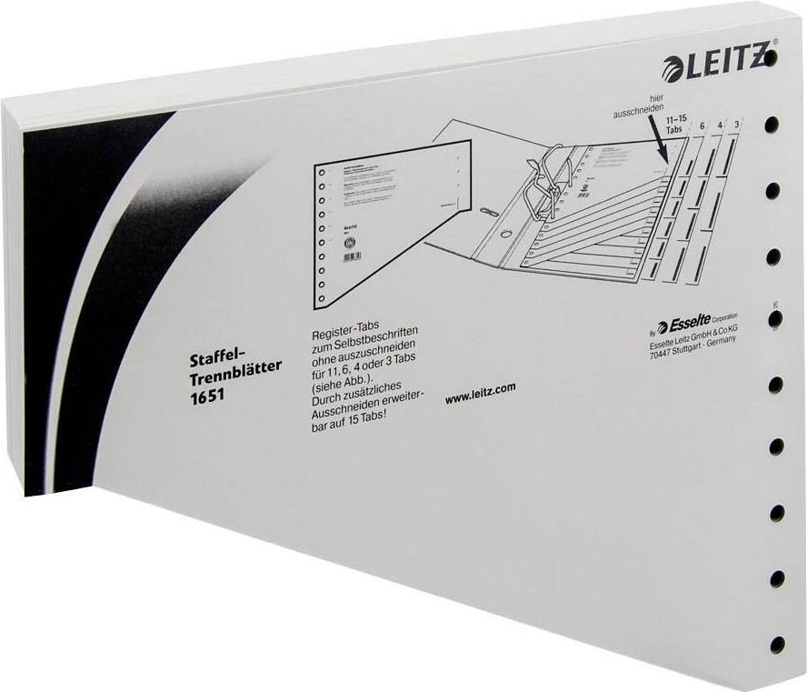 LEITZ Staffel-Trennblätter, DIN A4 Überbreite, grau Kraftkarton 200 g-qm, druch gestaffelte Anordnung können (1651-00-85)