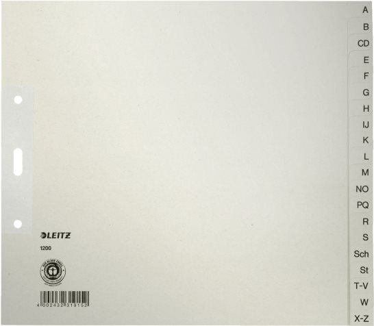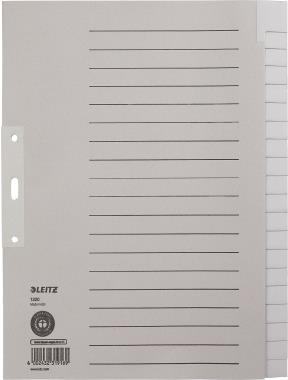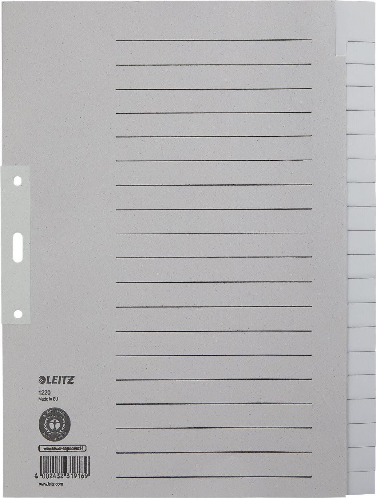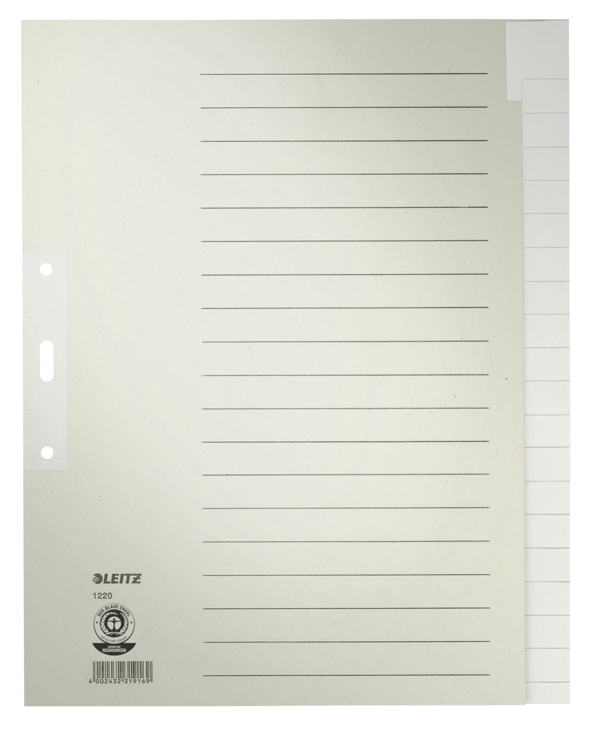 LEITZ Tauenpapier-Register, blanko, A4 Überbreite, 20-teilig grau, 100 g/qm, Lochung: 80 mm, mit Lochverstärkung des (1220-00-85)