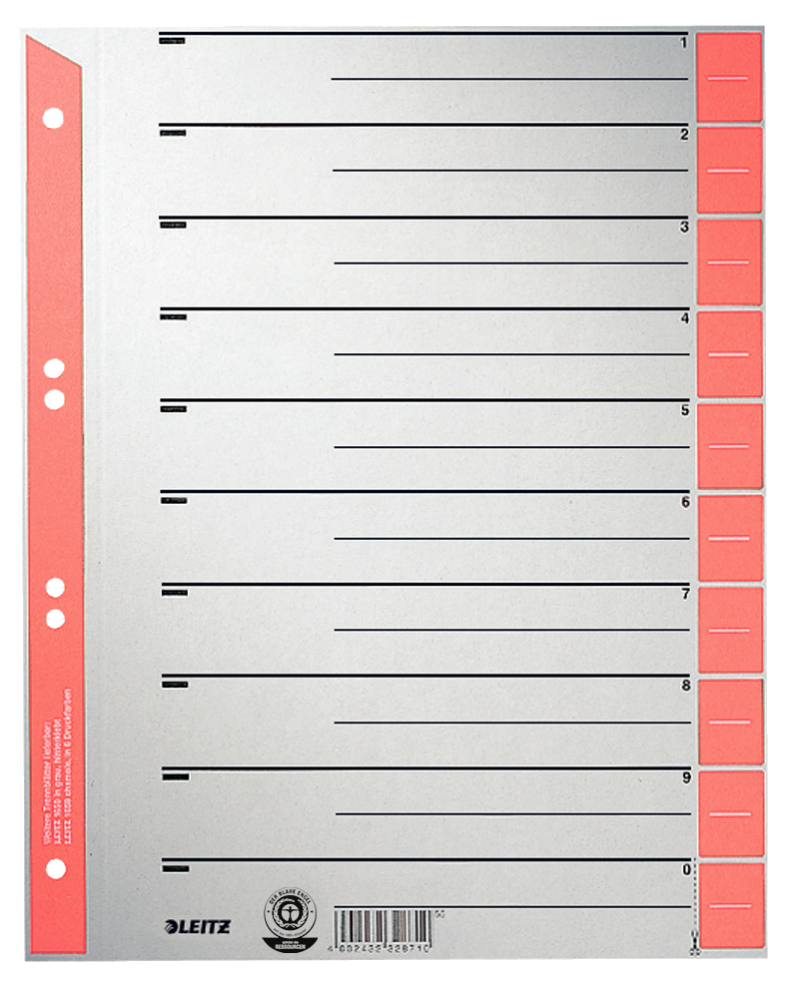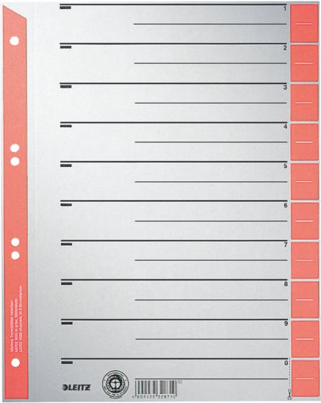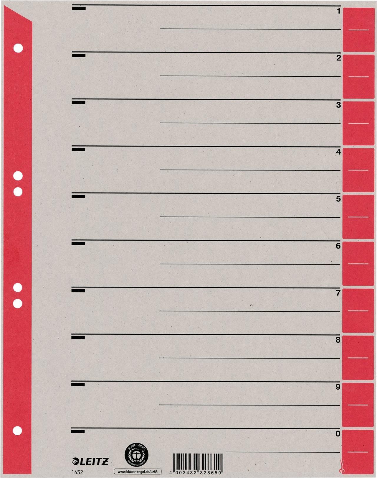 • LEITZ Trennblätter, A4 Überbreite, Karftkarton 230g/qm, rot aus grauem Karton mit roten Taben, Blanko-Registertaben (1652-00-25)