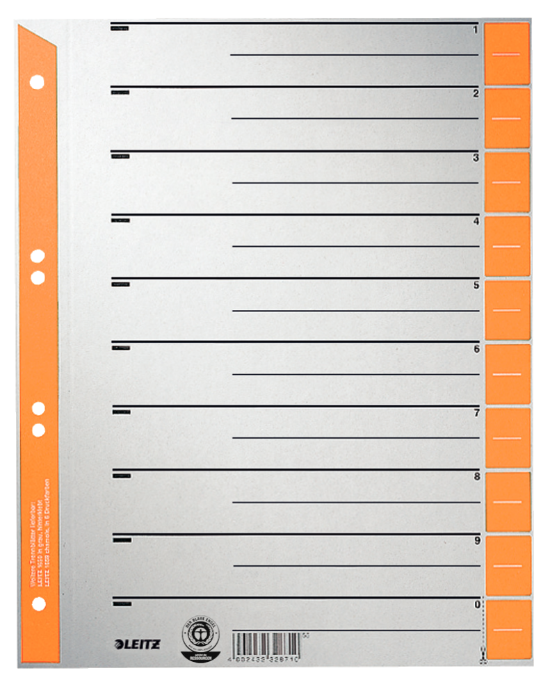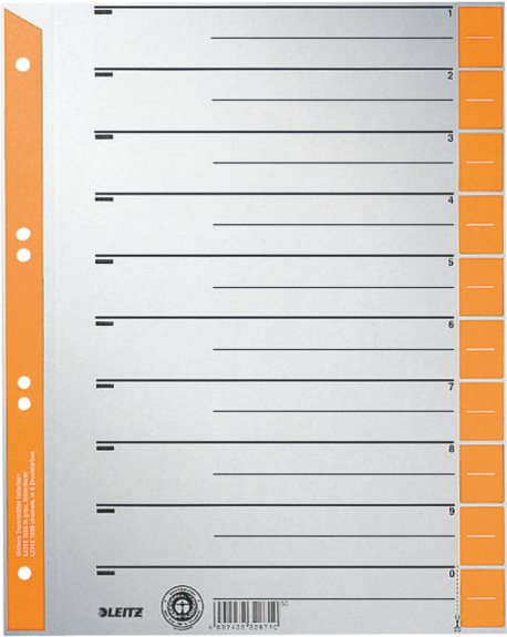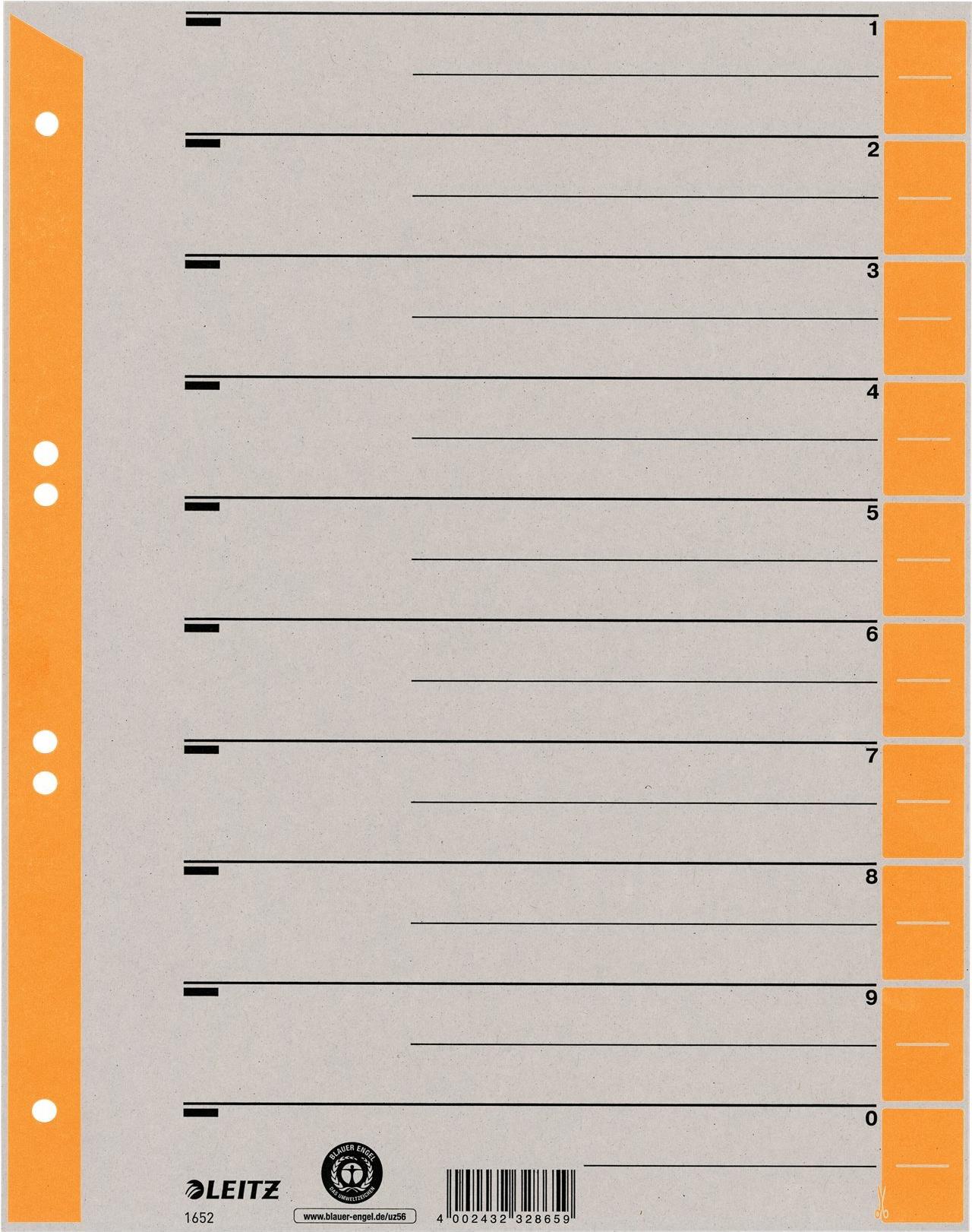 Leitz Trennblatt - farbig bedruckt - Grau - Orange - Pappe - Numerisch - A4 (1652-00-45)