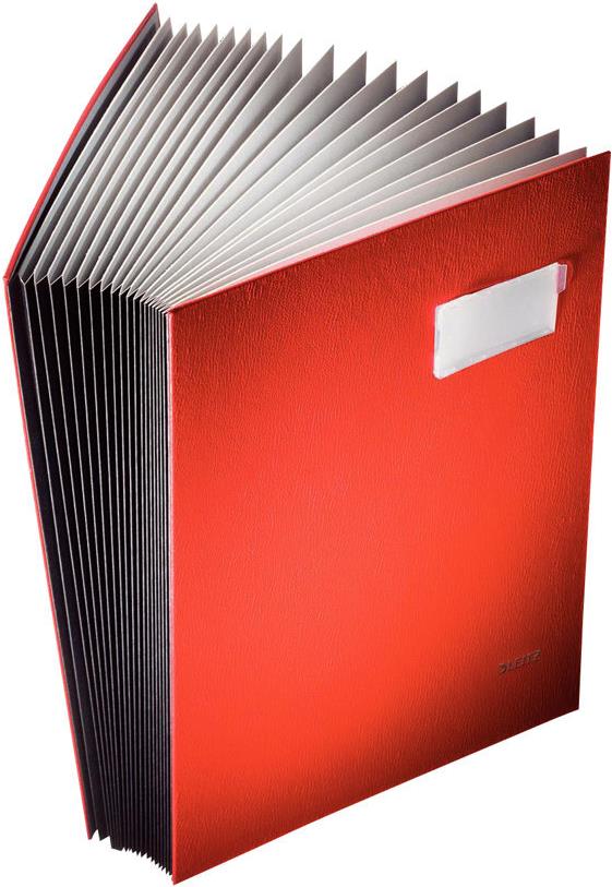 LEITZ Unterschriftenmappe, PP-Überzug, 20 Fächer, rot DIN A4, Fächerblock aus grauem, saugstarkem Löschkarton (5700-00-25)