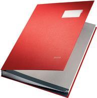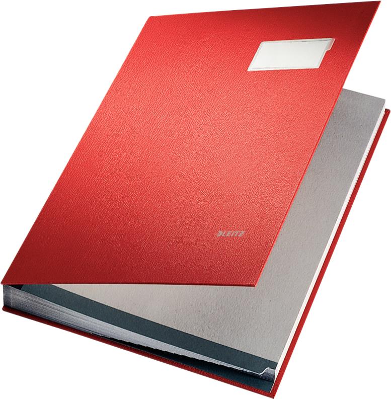 LEITZ Unterschriftenmappe, PP-Überzug, 20 Fächer, rot DIN A4, Fächerblock aus grauem, saugstarkem Löschkarton, Einband aus Graupappe, Sichtlöcher, verstärkte Wendetaben, mit Beschriftungsschild, dehnbarer Rücken, Maße: (B)240 x (H)340 mm (5700-00-25)