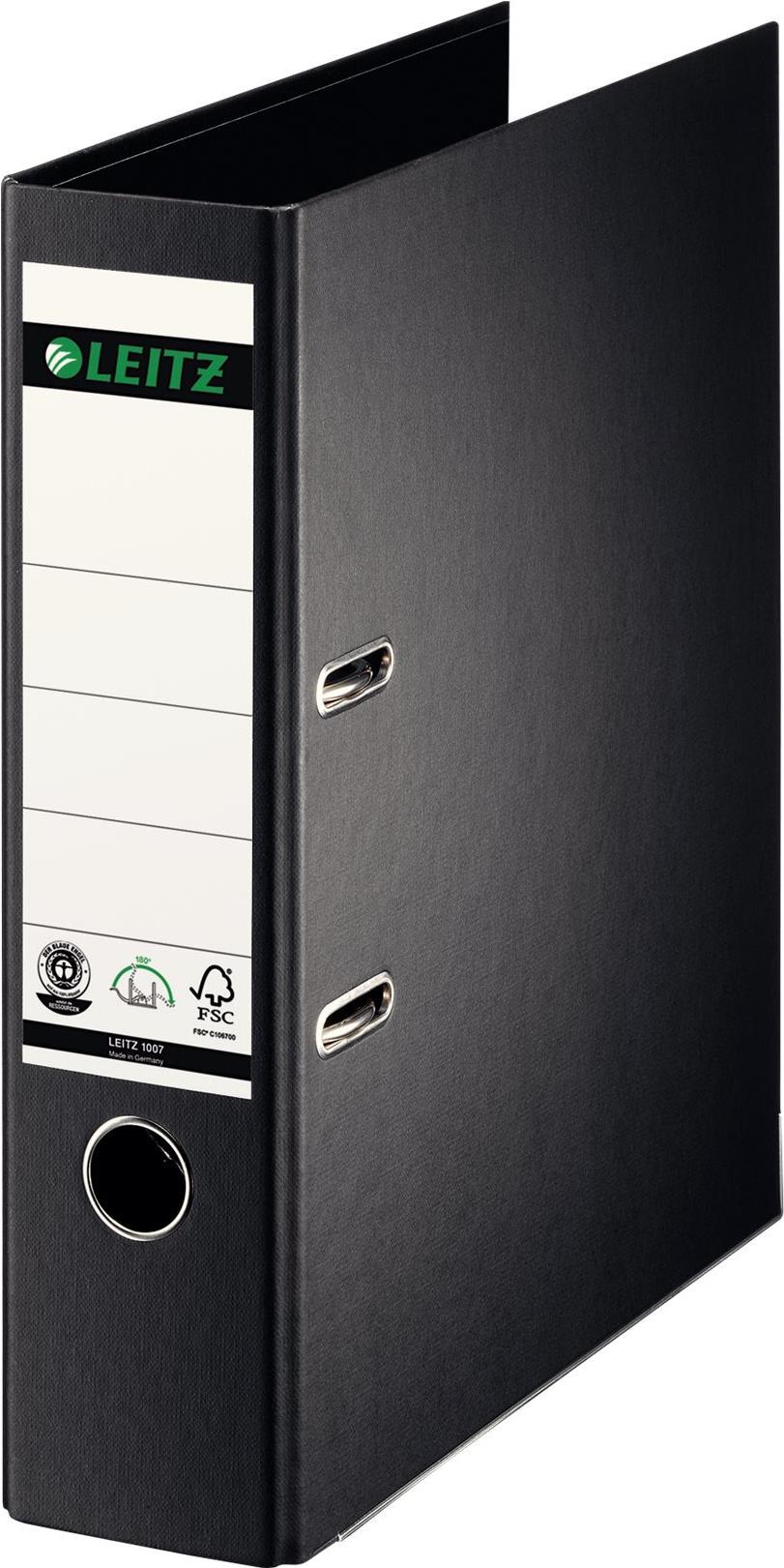 LEITZ Vollpapier-Ordner, 180 Grad, DIN A4, 80 mm, schwarz Einband aus Hartpappe, farbiger Vollpapierüberzug innen - 1 Stück (1007-00-95)