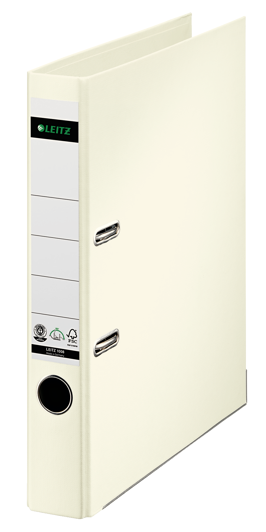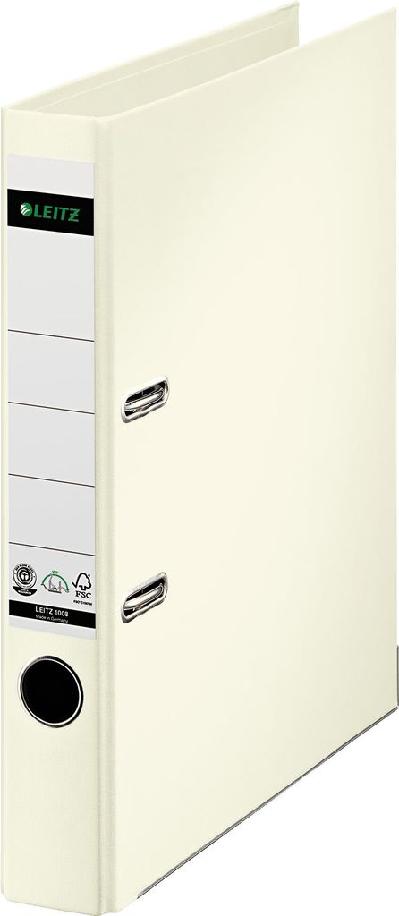 LEITZ Vollpapier-Ordner, 180 Grad, DIN A4, 50 mm, weiß Einband aus Hartpappe, farbiger Vollpapierüberzug innen - 1 Stück (1008-00-01)