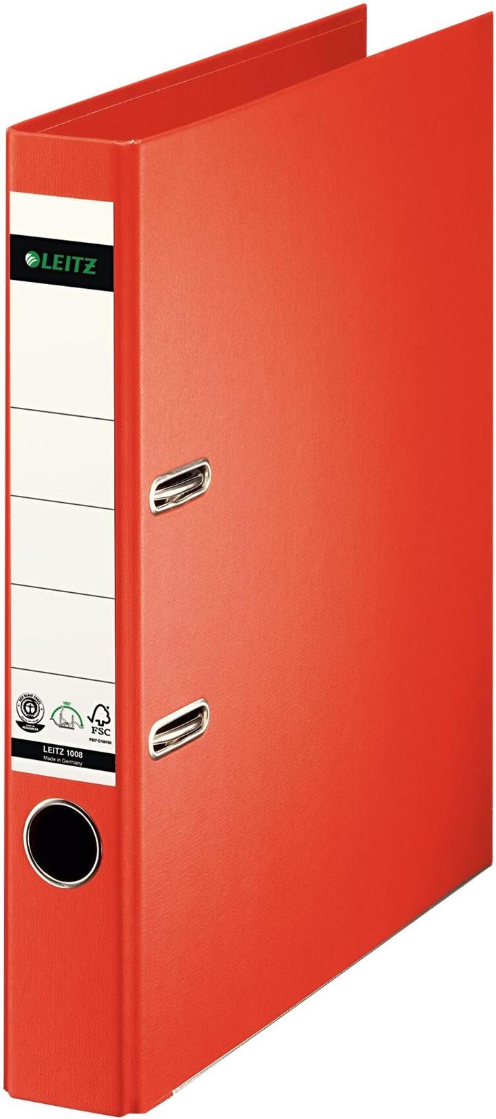 LEITZ Vollpapier-Ordner, 180 Grad, DIN A4, 50 mm, hellrot Einband aus Hartpappe, farbiger Vollpapierüberzug innen - 1 Stück (1008-00-20)
