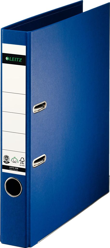 • LEITZ Vollpapier-Ordner, 180 Grad, DIN A4, 50 mm, blau Einband aus Hartpappe, farbiger Vollpapierüberzug innen - 1 Stück (1008-00-68)