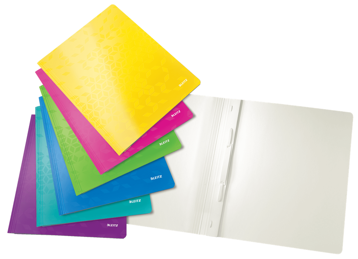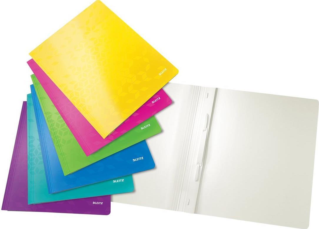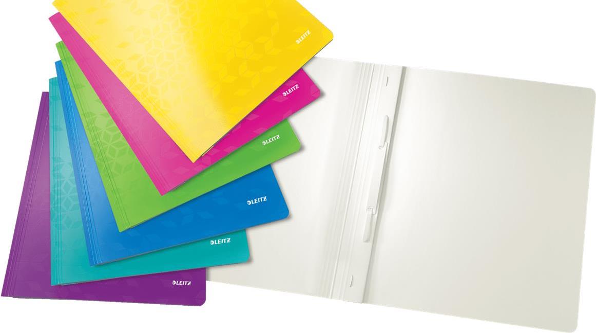 Auffälliger Schnellhefter in brillanten WOW Farben. Die mit geometrischem Muster geprägte, laminierte Oberfläche verleiht dem Schnellhefter ein glänzendes und hochwertiges Design.