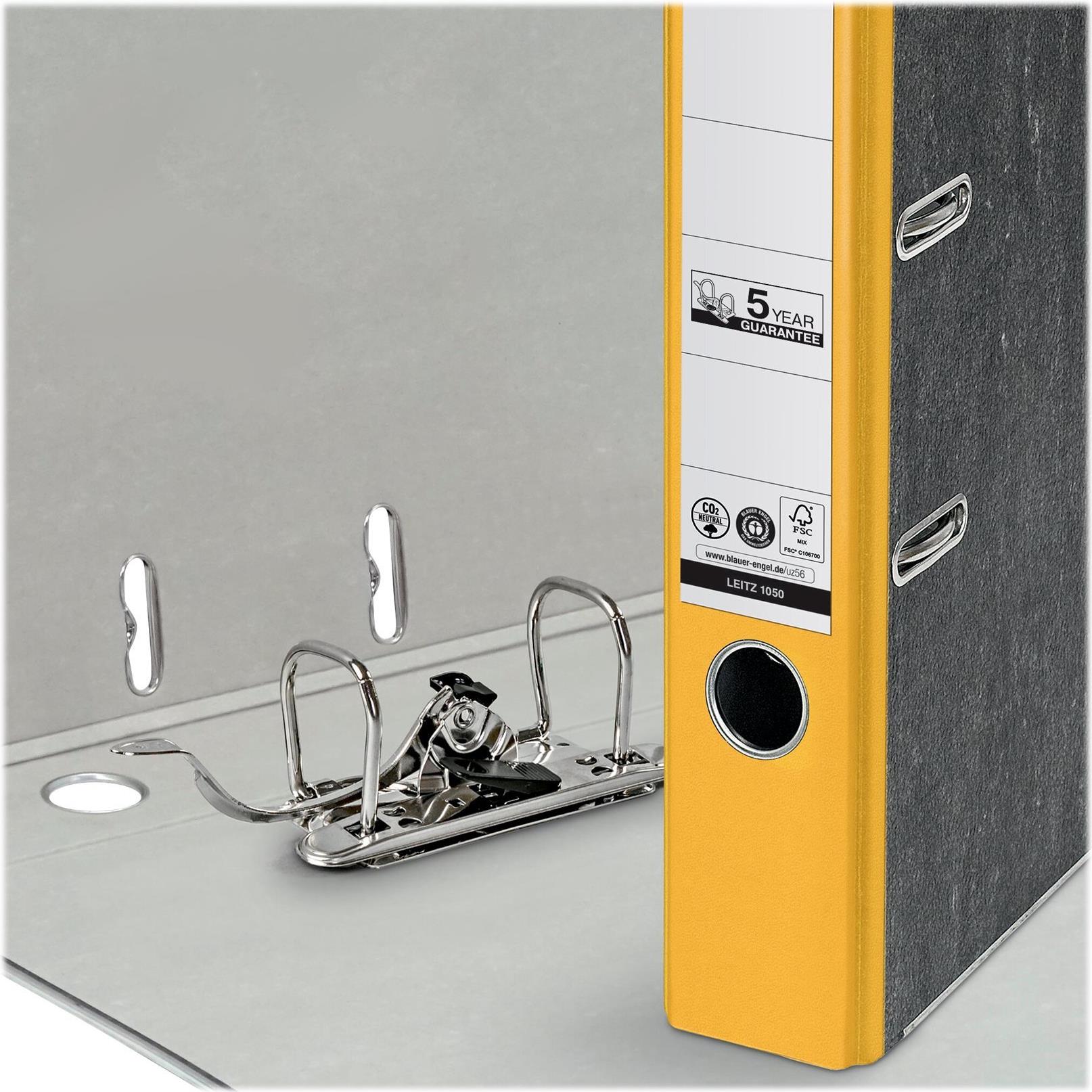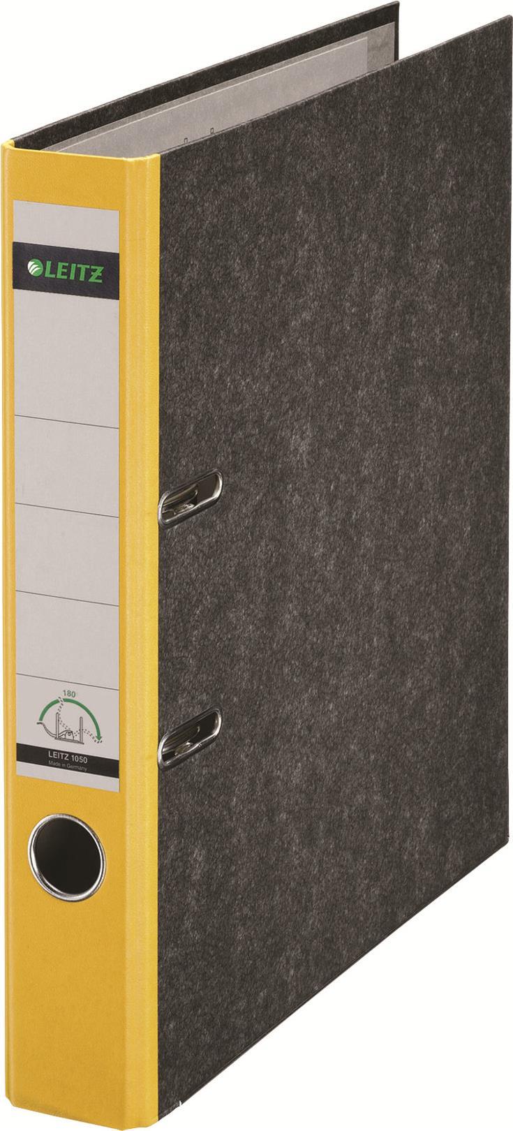 LEITZ Wolkenmarmor-Ordner, 180 Grad, DIN A4, 52 mm, gelb farbiger Rücken, Einband aus Pappe, außen mit Wolkenmarmor- (1050-50-15)