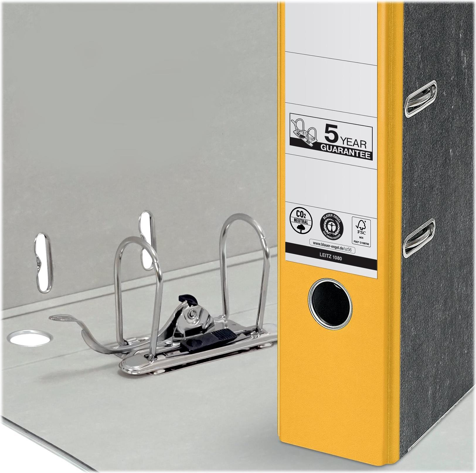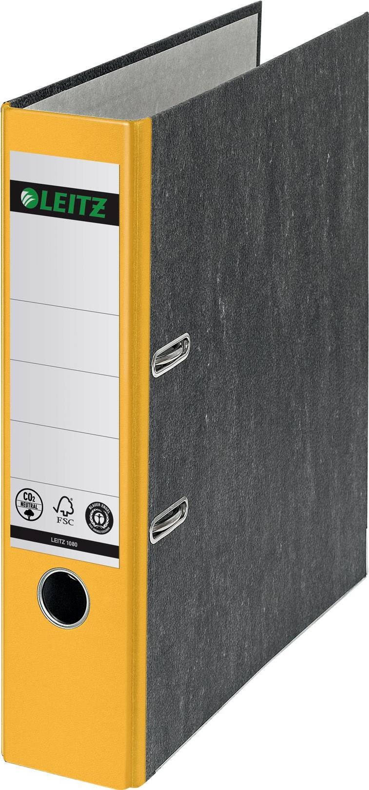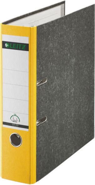 LEITZ Wolkenmarmor-Ordner, 180 Grad, DIN A4, 80 mm, gelb farbiger Rücken, Einband aus Pappe, außen mit Wolkenmarmor- (1080-50-15)