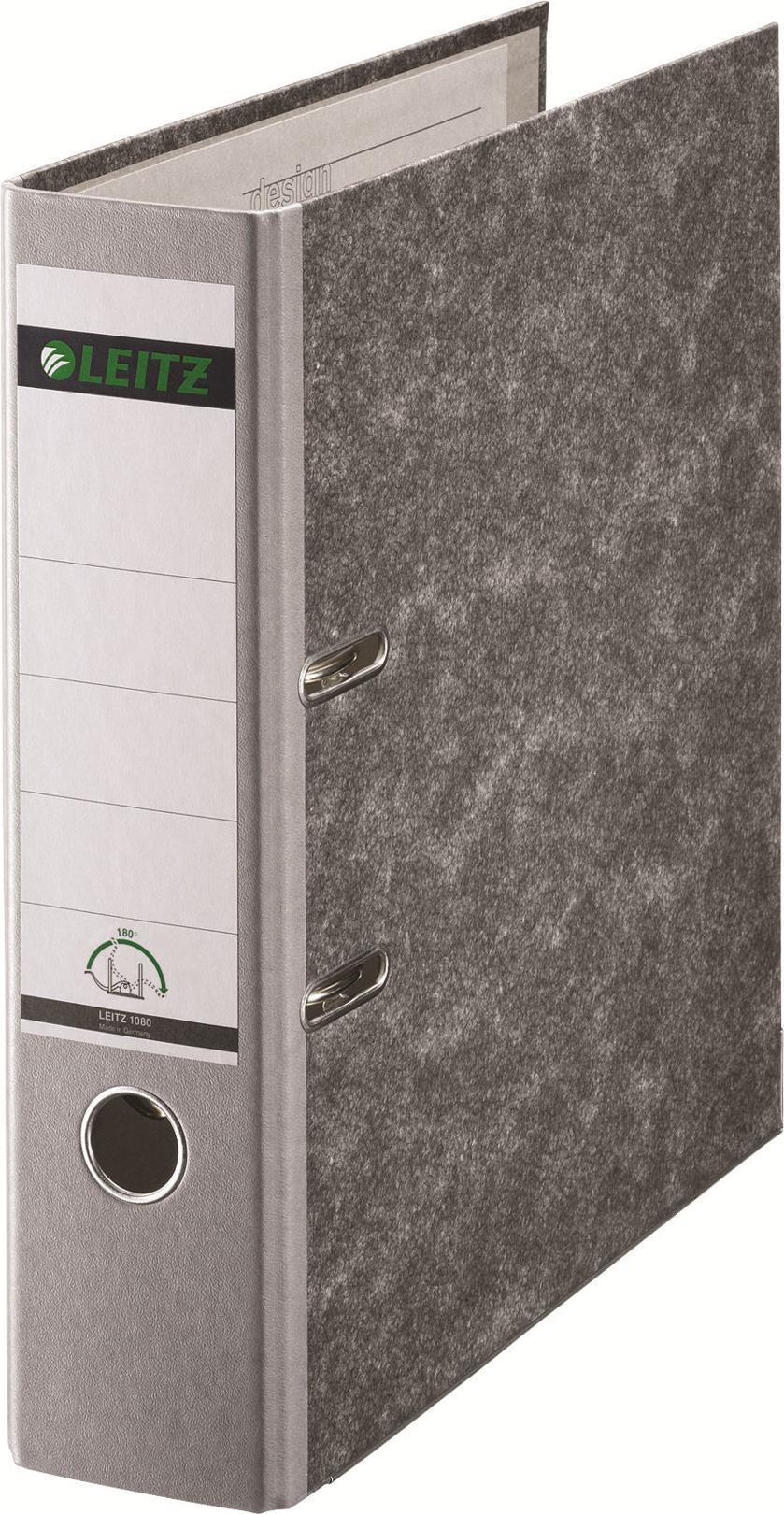 LEITZ Wolkenmarmor-Ordner, 180 Grad, DIN A4, 80 mm, grau farbiger Rücken, Einband aus Pappe, außen mit Wolkenmarmor- (1080-50-85)