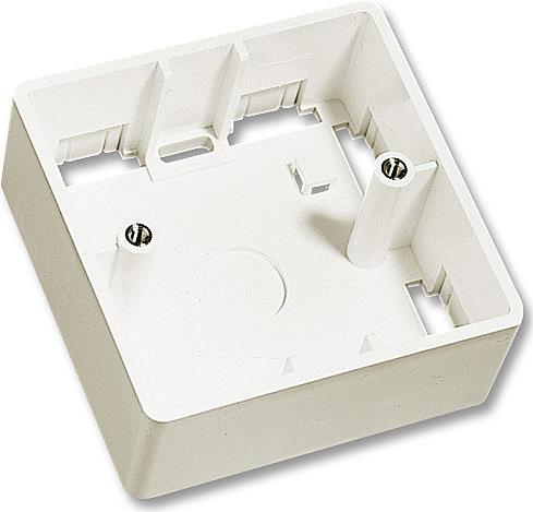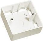 Aufputzrahmen für Blenden der modularen Wanddosenserie in der Größe 86x86mm Einzel-Wanddosen UK, in Kunststoff weiß, RoHS und UL kompatibel.